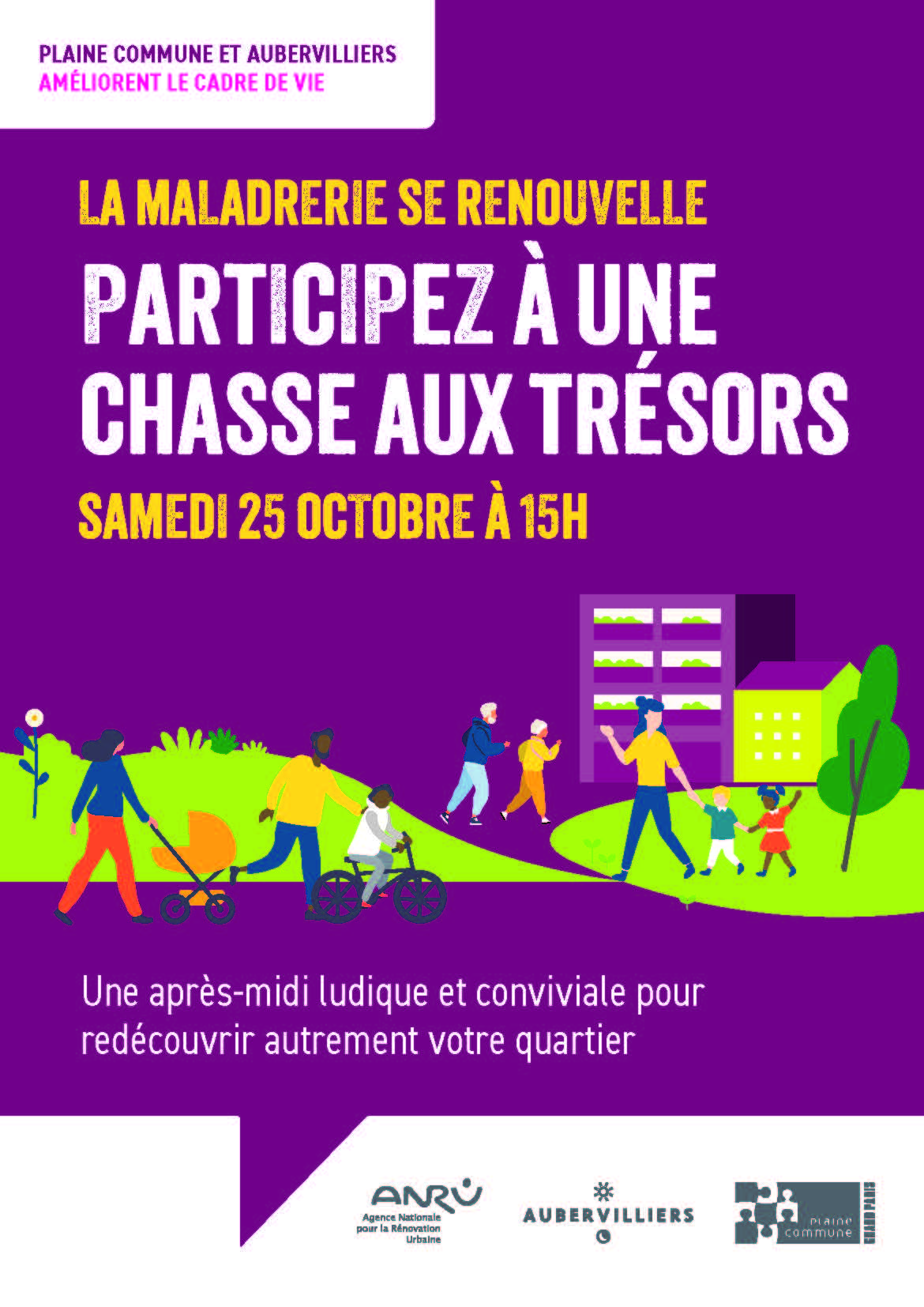 Plaine Commune et la ville vous invitent samedi 25 octobre à 15h à la prairie de la Maladrerie, à une chasse aux trésors pour découvrir la végétation et la biodiversité qui s’épanouissent dans votre quartier.