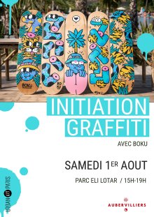 - Samedi 01/08 - Parc Eli Lotar - de 15h à 19h00 : Ateliers Graff - Customisation de bombes et réalisation de toile d’1x1m (10 personnes par session, durée 45mn)