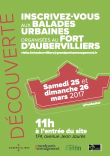 Le week-end du 25 et 26 mars, le Fort d’Aubervilliers vous ouvre ses portes pour une balade urbaine à 11 h, organisée par Grand Paris Aménagement. Venez visiter le site et connaître les grandes lignes du futur projet d’aménagement, avec notamment un survol filmé par un drone du Fort.