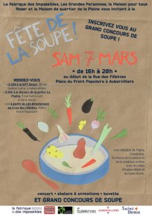 Samedi 7 mars, ils vous invitent à la fête de la soupe durant laquelle un concert aura lieu ainsi que des ateliers et animation.