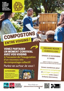 La Ville d’Aubervilliers, en partenariat avec Plaine Commune, est heureuse de vous inviter à l’inauguration du composteur de quartier installé au Square Roser, samedi 23 novembre, de 14 h à 17 h, au Square Roser.