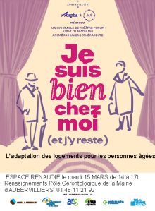 La Ville d’Aubervilliers et la compagnie NAJE proposent un spectacle de théâtre forum, le mardi 15 mars, de 15 h à 17 h, à l’Espace Renaudie, sur l’adaptation des logements pour les personnes âgées.