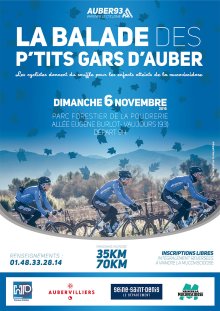 La traditionnelle Balade des P’tits gars d’Auber avec Auber93 se tiendra le dimanche 6 novembre dans le parc forestier de la Poudrerie. Départ à 9 h pour soutenir la lutte contre la mucoviscidose.