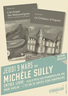 Michèle Sully, femme de lettres et de théâtre d’Aubervilliers, fera une lecture de ses derniers ouvrages L’Archipel des Mascareignes et Le Château d’Aigues.