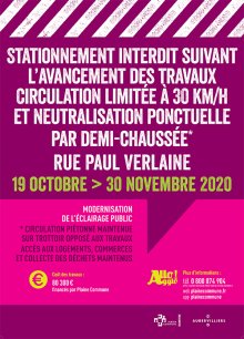 Des travaux de modernisation de l’éclairage public rue Paul Verlaine seront réalisés, du 19 octobre au 30 novembre.