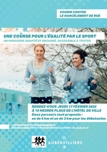 La Direction des sports d’Aubervilliers propose, jeudi 17 février 2022, une nouvelle course féminine à travers la ville contre le harcèlement de rue que certaines coureuses peuvent subir pendant leur jogging. Deux parcours sont proposés : un de 6 km et un de 3 km pour les débutantes.