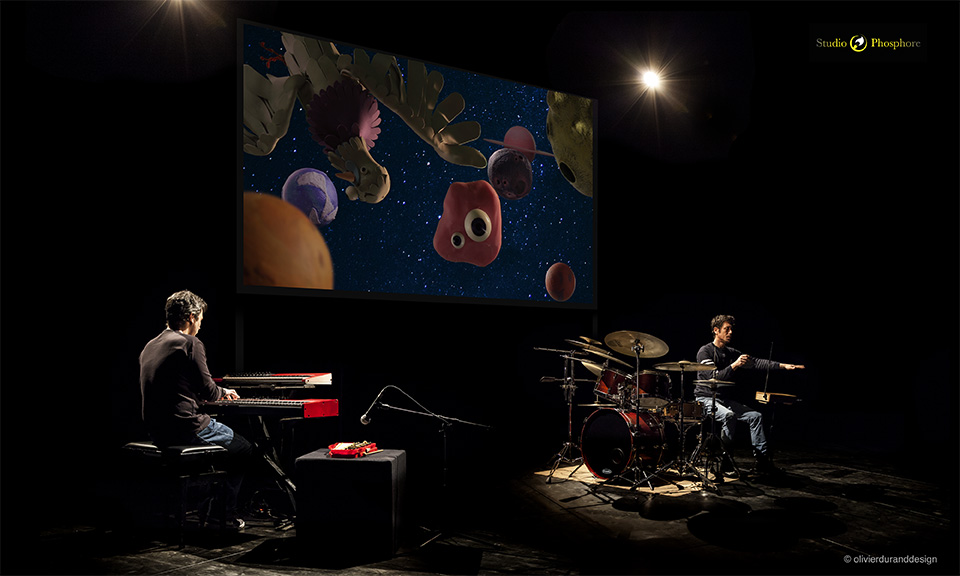 Dessins animés, peinture, films d’animation sans parole sont accompagnés en direct par deux musiciens qui transportent les petits comme les grands dans un univers drôle et poétique.