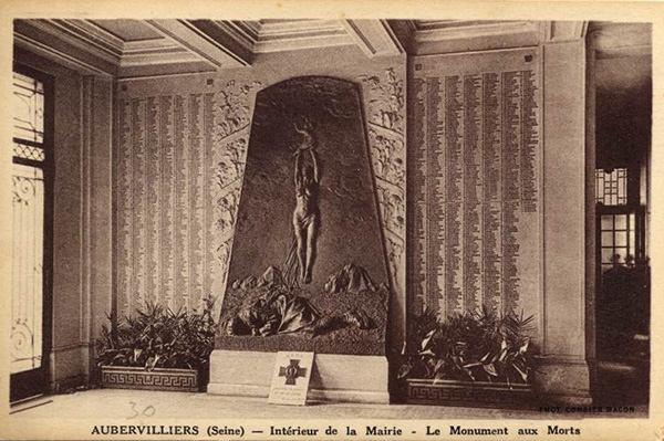 L’Hôtel de Ville d’Aubervilliers a la particularité d’être la seule mairie à abriter son Monument aux morts - d’inspiration pacifiste - à l’intérieur de ses murs.