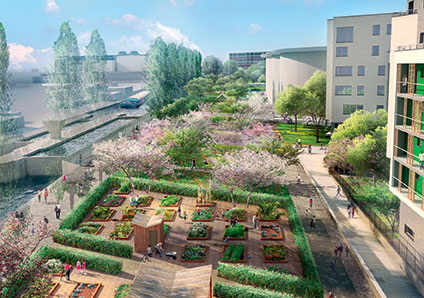 et 50 mètres de large, des jardins partagés, des vergers et des aires de jeux pour les