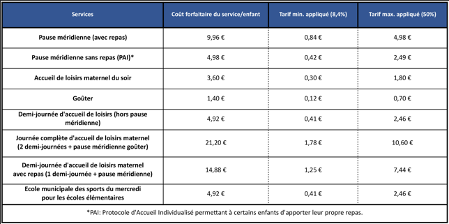 Tarifs minimum et maximum appliqués à la rentrée 2026-2027