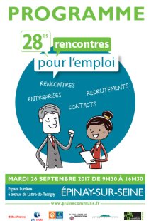Les prochaines Rencontres pour l’emploi auront lieu le mardi 26 septembre à Épinay-sur-Seine, à l’Espace Lumière. Pour trouver un travail ou en changer. Venez muni-e de votre CV !
