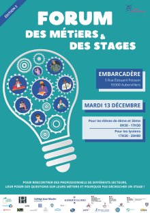 Mardi 13 décembre aura lieu à L’Embarcadère la 2e édition du Forum des Métiers et des Stages.