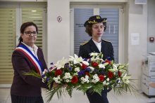 Nos initiatives se sont donc réduites au dépôt d’une gerbe devant le monument aux morts que j’ai déposé au nom de la Municipalité et aux côtés de Madame la Sous Préfète de Saint-Denis, Anne Coste de Champeron.