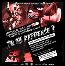 Créé en 2021, le dispositif « Rappeuses en liberté » a pour objectif d’accompagner les rappeuses et de fournir aux artistes sélectionnées une formation artistique adaptée, et de leur faire bénéficier d’une véritable expertise dans la professionnalisation et la médiatisation. À la clé : l’opportunité unique de se produire en public et devant des professionnels.