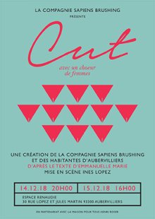 La Compagnie Sapiens Brushing vous invite à la représentation de CUT d’Emmanuelle Marie, vendredi 14 à 20 h et samedi 15 décembre à 16 h à l’Espace Renaudie.