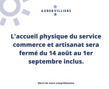 Le Service commerce et Artisanat ferme exceptionnellement ses portes jusqu’au 1er septembre inclus.