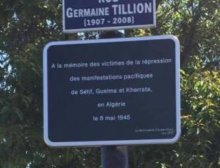 face à la plaque commémorative inaugurée en mai 2017, rue Germaine Tillon (angle de la rue des fillettes).