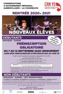 Préinscription obligatoire du 7 au 12 septembre 2020 lors des permanences d’information au CRR 93.