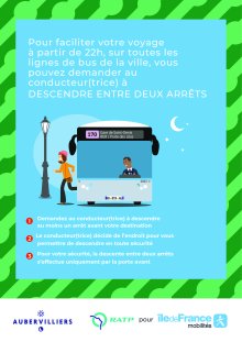 Depuis début octobre, les usagers des bus et des bus de nuit Noctilien peuvent demander à descendre à la demande à partir de 22 heures.