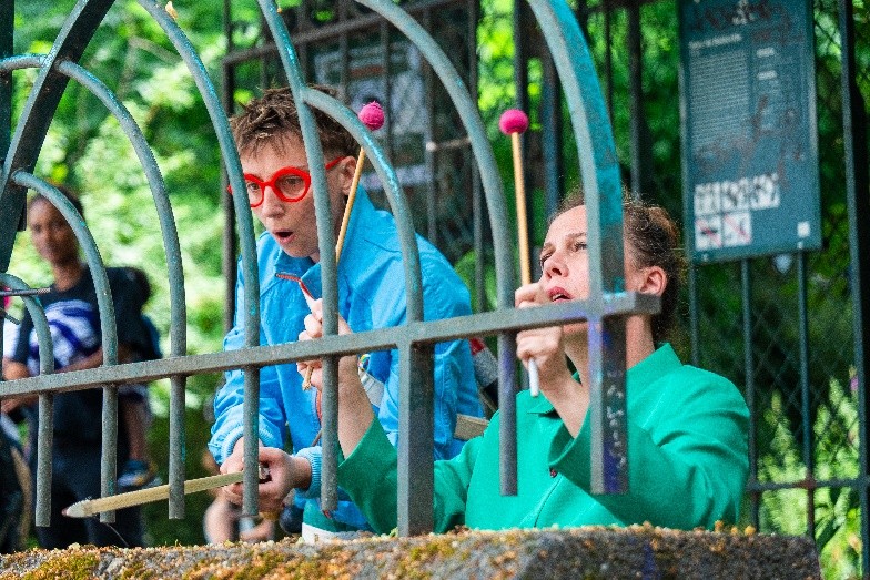 Et si la poésie naissait des objets du quotidien ? Avec Chiche !, quatre personnages silencieux et colorés transforment un square, une placette ou une cour en paysage sonore et visuel.