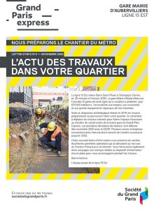 Lettre d’info du chantier de la gare Mairie d’Aubervilliers ligne 15 Est