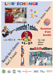Le premier anniversaire de livr’échange et le lancement de la buvette auront lieu le dimanche 7 octobre au marché des Quatre Chemins, de 9 h à 13 h.