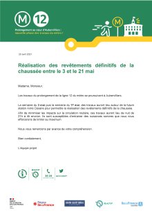 Les travaux du prolongement de la ligne 12 du métro se poursuivent à Aubervilliers entre le 3 et le 21 mai.