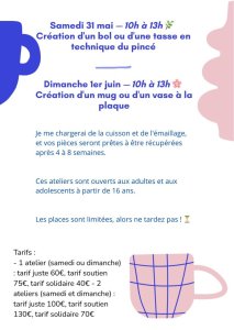 Inscriptions : https://www.helloasso.com/…/atelier-ceramique-week-end… (Link in bio)