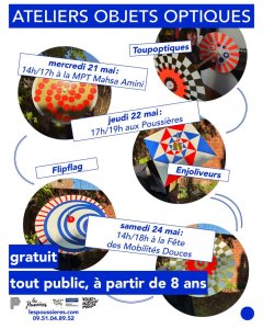 @latelierpolysemique vous proposent de confectionner des objets optiques rotatifs qui défileront lors de la parade du dimanche 6 juillet !