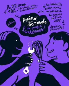 Retrouvez-nous jeudi 22 mai à 19h aux Poussières pour en savoir plus lors de l’apéro bénévole.