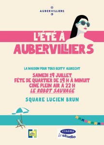 19/07 : Fête de quartier de 19h à minuit – dont ciné plein air à 22h – square Lucien Brun « Le robot sauvage »