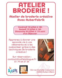 Le café associatif La Blague propose des ateliers de broderie pendant l’été, animés par Auberfabrik. Au 126 rue Danielle Casanova.