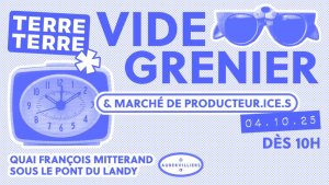 Terre Terre – Quai François Mitterrand (sous le pont du Landy), Aubervilliers Horaires : Vend : 18-22h • Sam : 10-22h • Dim : 14-22h