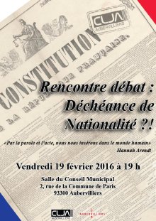 La Ville d’Aubervilliers et le Conseil local des jeunes organisent une rencontre/débat sur la déchéance de nationalité.