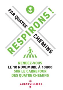 Parce que cette prise de conscience doit être collective, parce qu’il est vital de mieux respirer à Aubervilliers, la maire Mériem Derkaoui et les élu-e-s invitent la population à l’initiative citoyenne « Respirons par quatre chemins » le vendredi 18 novembre 2016 de 18h00 à 20h00 sur le carrefour des quatre chemins.