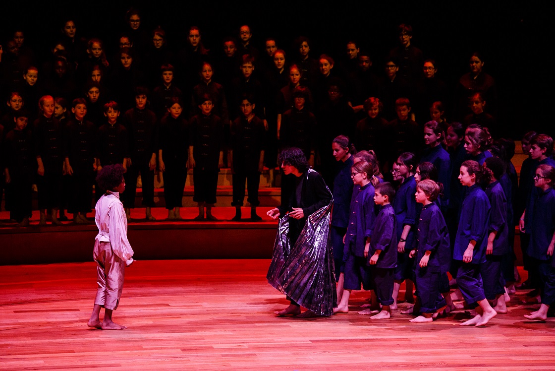 L’œuvre alterne parties parlées (en français) et chantées (en anglais).