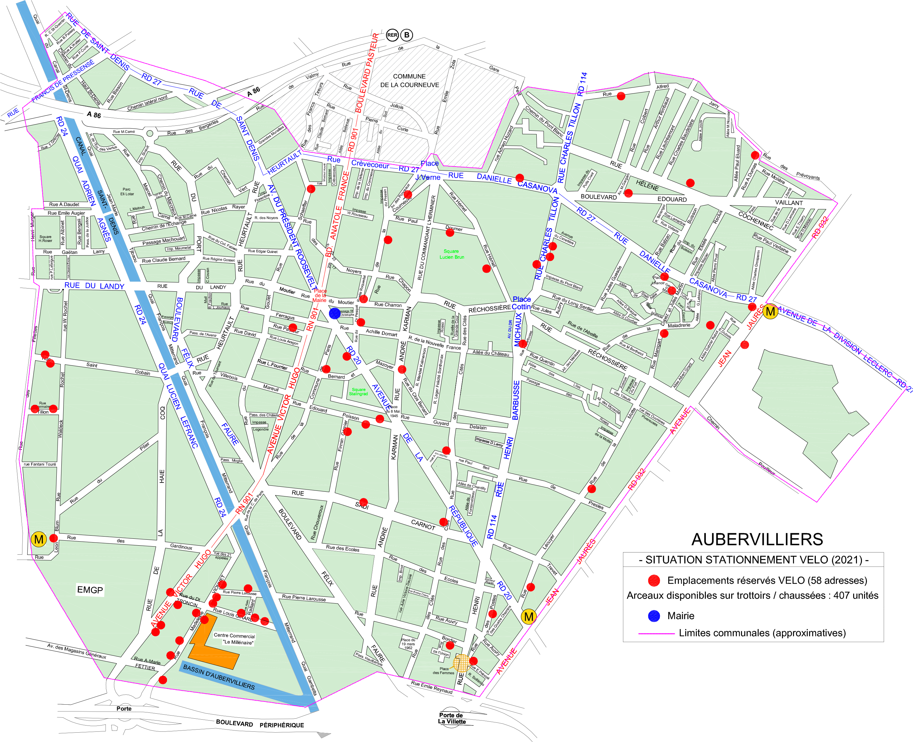 Si vous constatez un besoin de stationnement vélo sur l’espace public, n’hésitez pas à contacter la Direction Environnement et Développement Durable : direction.environnement@mairie-aubervilliers.fr