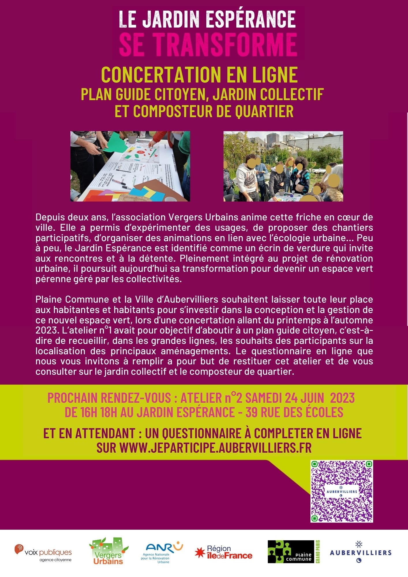 Un questionnaire en ligne est aussi disponible sur la plateforme citoyenne : https://www.jeparticipe.aubervilliers.fr