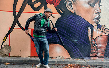 Beau comme une fresque le Balthaze… c’est lui qui a voulu poser là, encore que le terme ne convienne guère à cet animal de scène (Invisible Animal, son album est sorti en mars 2016) qu’on a un jour découvert faisant le boeuf et plein de jus.